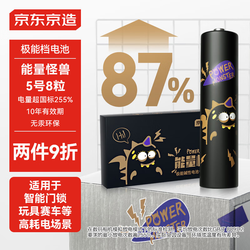 京东京造能量怪兽 极能碱性电池5号 无汞环保 玩具/血压仪/血糖仪/智能门锁/电子秤/鼠标【5号8节】