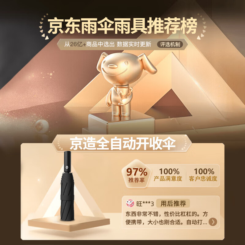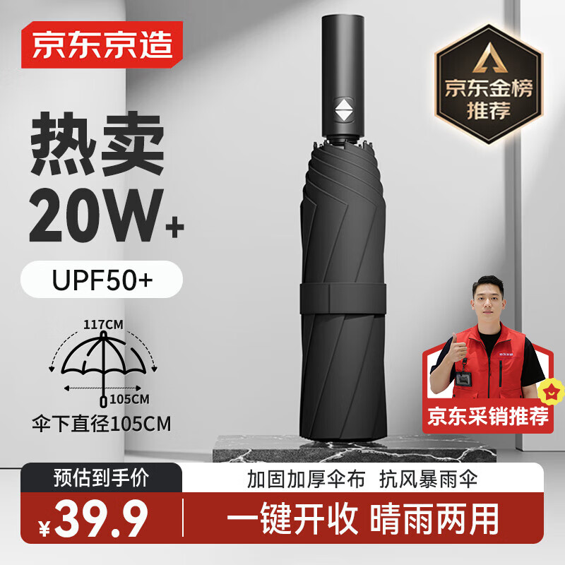 京东京造黑武士pro雨伞自动折叠伞便携遮阳男士晴雨两用大号八骨23寸105cm