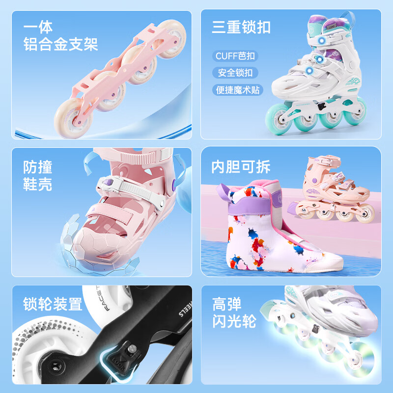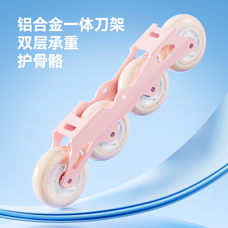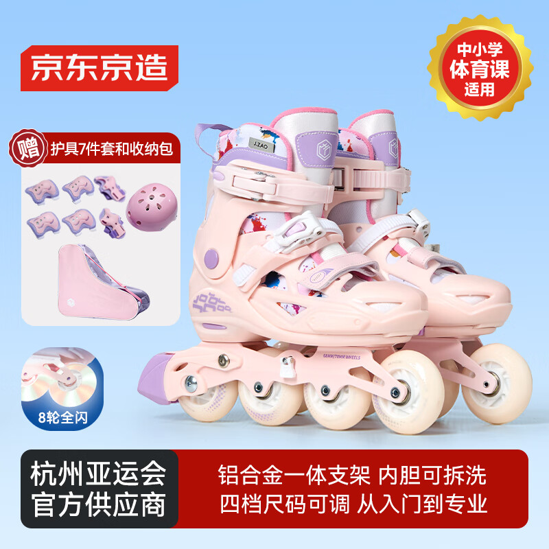 京东京造轮滑鞋儿童中小学初学锁轮溜冰鞋旱冰鞋配头盔护具7件套樱花粉M码