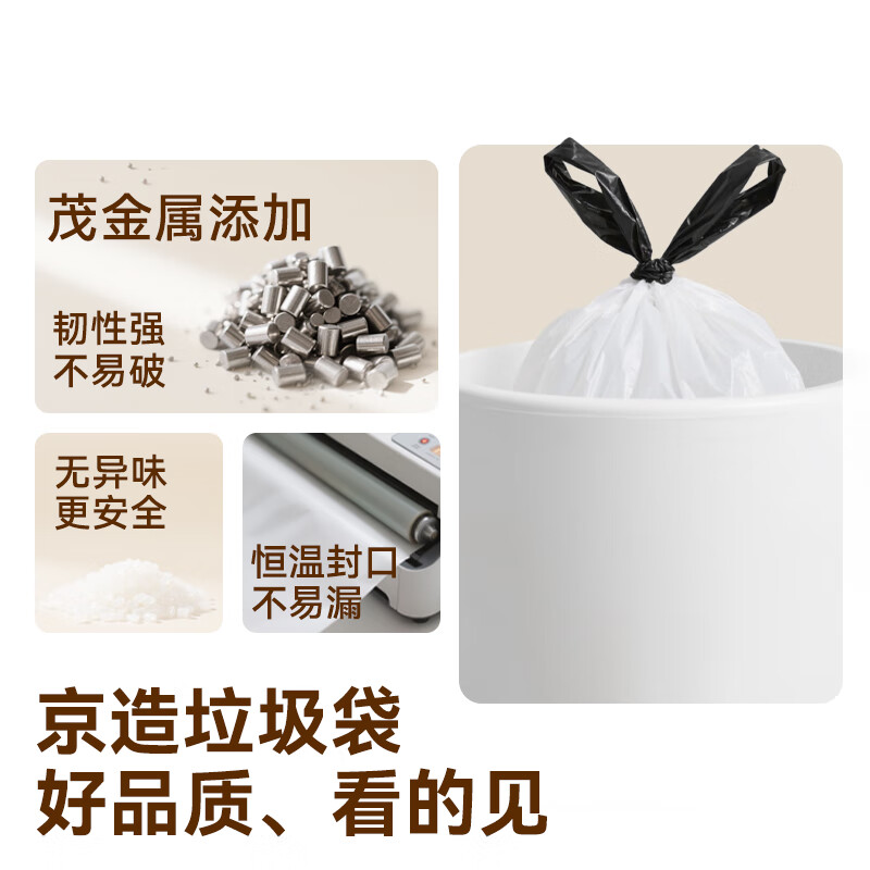 京东京造 抽绳式垃圾袋45*50cm*150只 10μ1丝 手提厨房家用加厚袋中号