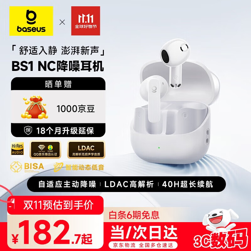倍思【重磅新品】BS1NC半入耳主动降噪AI蓝牙耳机无线40h强续航舒适蓝牙耳机适用苹果华为vivo手机礼物