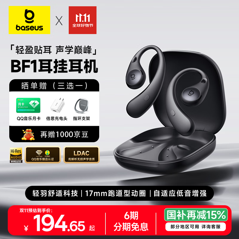 倍思【旗舰新品】BF1蓝牙耳机挂耳式开放式运动跑步长续航通话适用苹果华为手机