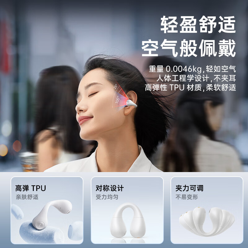 倍思AS01蓝牙耳机耳夹式开放式骨传导概念不入耳运动通话适用苹果华为vivo手机 白