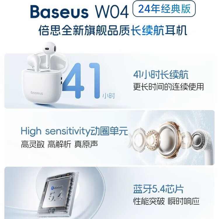 倍思W04 半入耳真无线蓝牙耳机 空间音效通话降噪低延迟长续航 适用苹果华为vivo荣耀oppo手机礼物