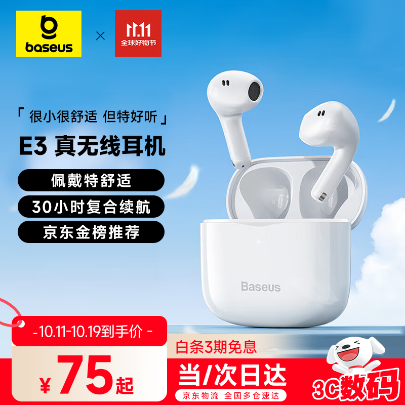 倍思E3 半入耳真无线耳机 25版佩戴舒适蓝牙5.4音乐运动耳机低延迟适用苹果华为vivo荣耀oppo手机礼物