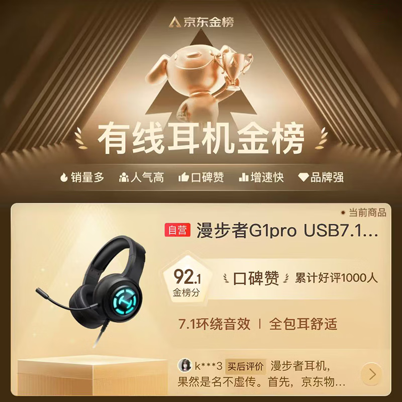漫步者(EDIFIER)HECATE G1pro USB7.1声道游戏耳机电竞耳麦头戴式电脑网课办公麦克风吃鸡有线耳机 黑色