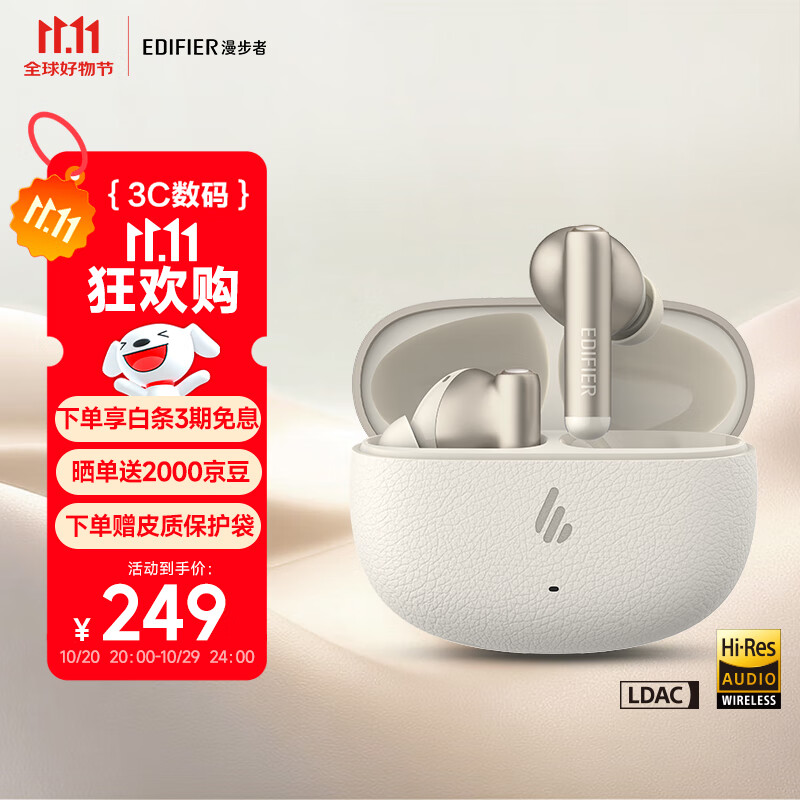 漫步者(EDIFIER)【2025新款】Lolli Pro SE 真无线主动降噪蓝牙耳机 蓝牙6.0 AI翻译 适用苹果华为小米手机 云岩白