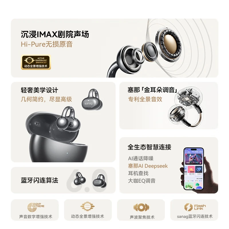 SANAG塞那S6S Ultra【补贴立减15%】蓝牙耳机耳夹式气骨传导概念开放式不入耳运动挂耳式无线AI翻译机