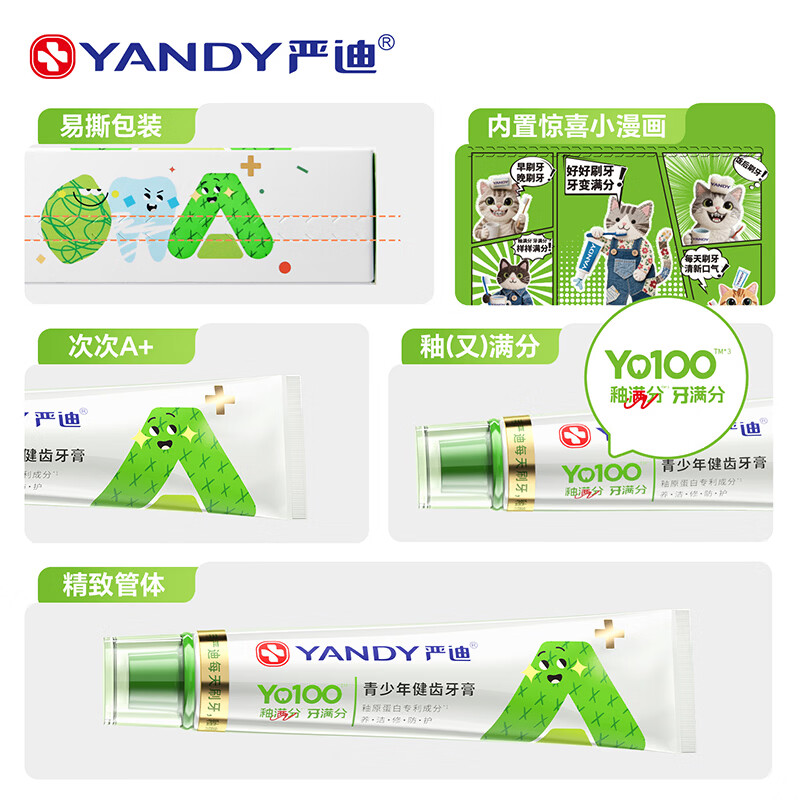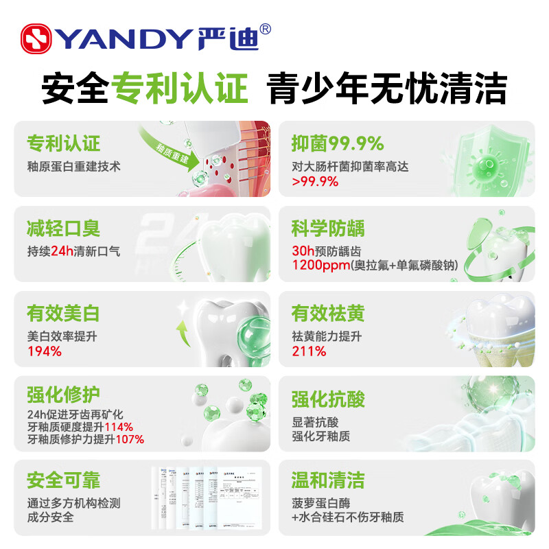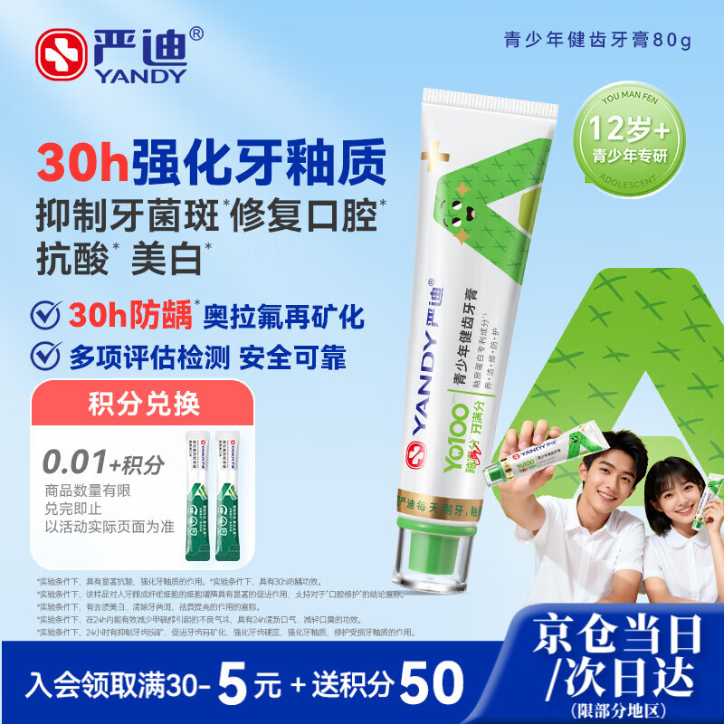 严迪(YANDY)青少年牙膏80g12-18岁儿童初高中生奥拉氟防蛀抑菌羟基磷灰石正畸