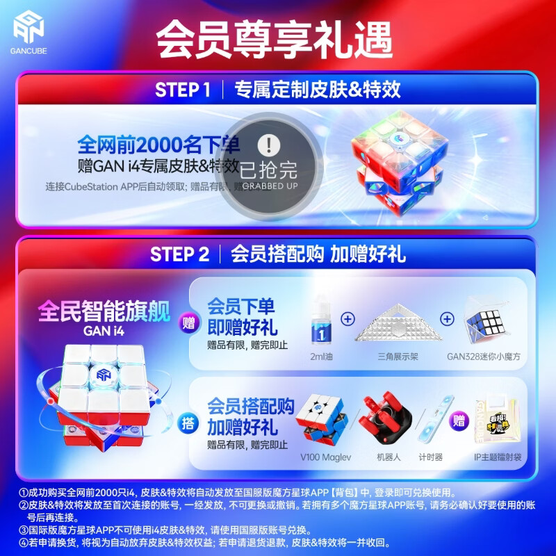 GANi4魔方智能三阶AI早教玩具益智解压磁力线上儿童生日新年礼物 【双磁环 智能满配 支持快充】GAN i4 Maglev_UV版