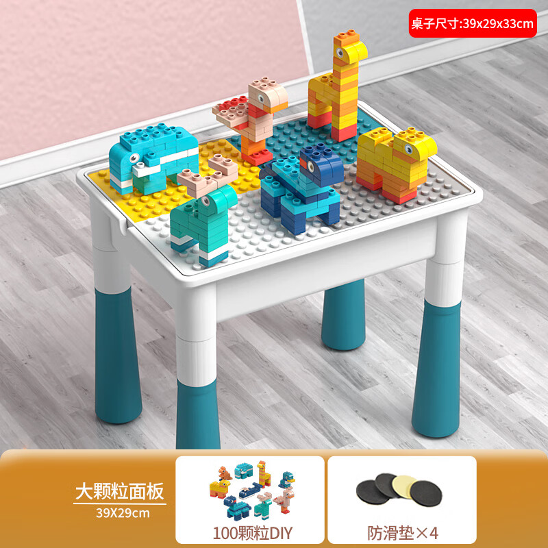 乐凑(L)积木桌1-3-6-12岁可啃咬结实多功能儿童大号大颗粒学习桌二合一 长方桌0椅+100大颗粒+4防滑垫