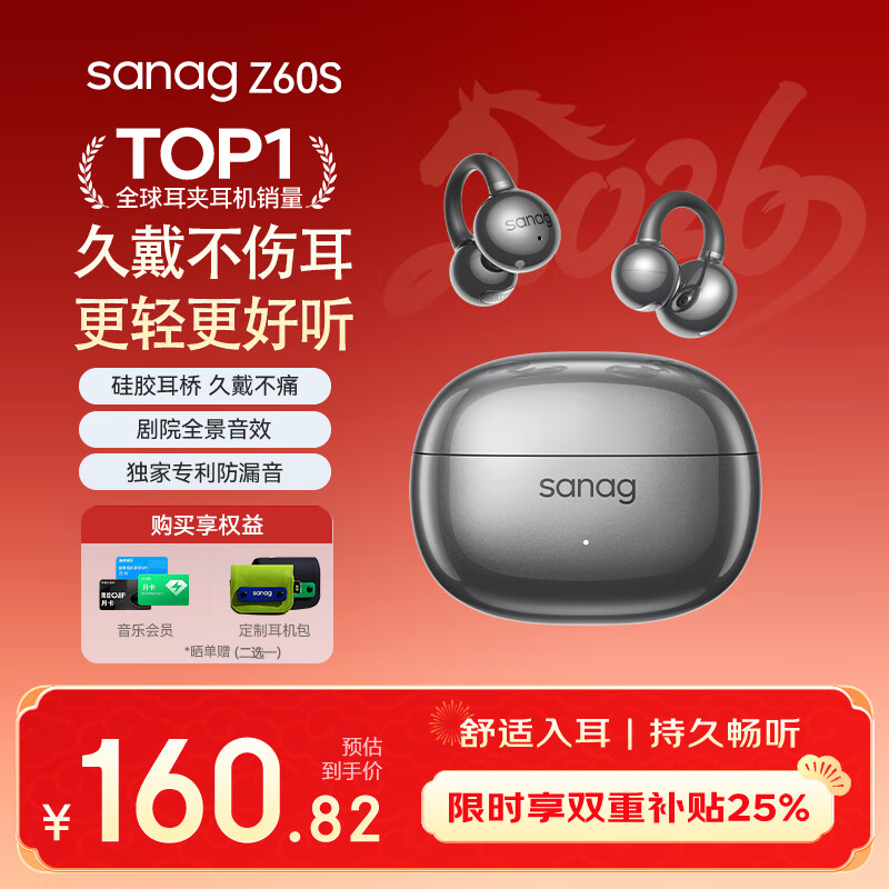 SANAG塞那Z60S 蓝牙耳机国家补贴耳夹式 AI气骨传导概念无线通话降噪运动无损音乐耳机翻译机