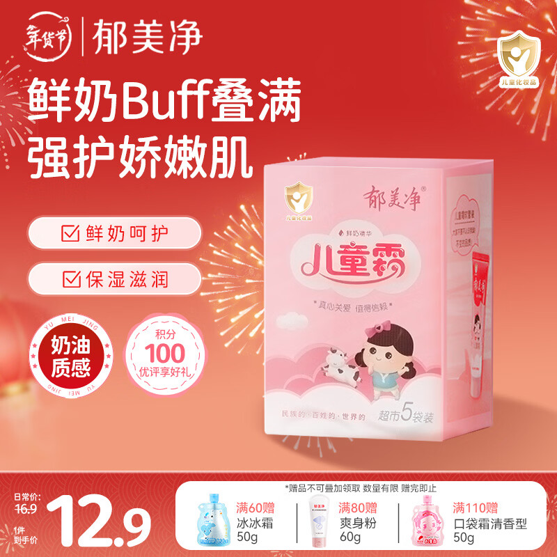 郁美净鲜奶儿童面霜25g*5袋霜保湿补水滋润宝宝冬季面霜润肤霜鲜奶霜