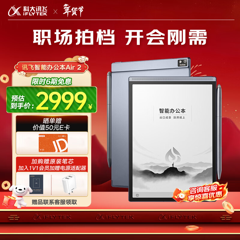 科大讯飞智能办公本Air 2 8.2英寸电子书阅读器 墨水屏平板电脑 手写笔记本电纸书 语音转文字 大模型加持