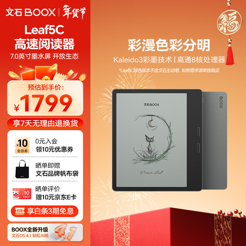 BOOX文石Leaf5C 7英寸彩色墨水屏电纸书电子书阅读器电子纸 便携阅读看书漫画办公本平板电脑 森林绿