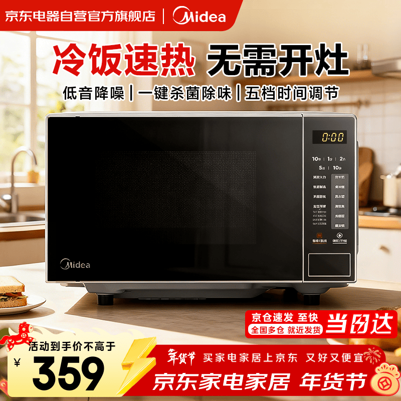美的(Midea)微波炉平板小型家用多功能 易清洁内胆20升 高效速热一键解冻杀菌除味宝宝菜单 M22J