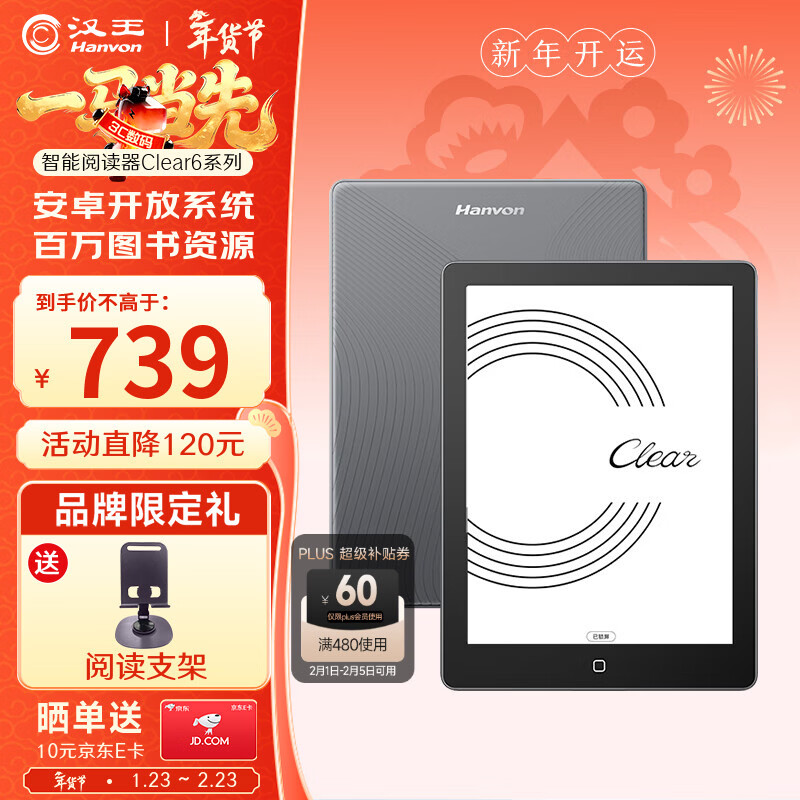汉王(Hanvon)Clear6英寸电子书阅读器 墨水屏电纸书平板 智能阅读本电子纸 看书学习便携阅读 冰山灰