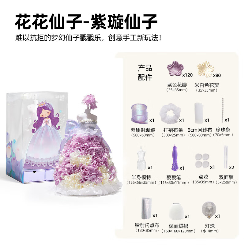 美乐童年儿童礼物女孩立体戳戳乐玩具3-6岁服装设计过家家生日礼物 花花仙子-紫璇仙子