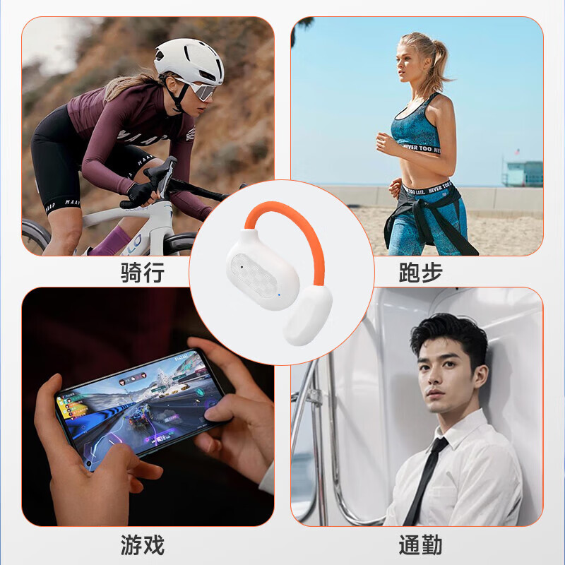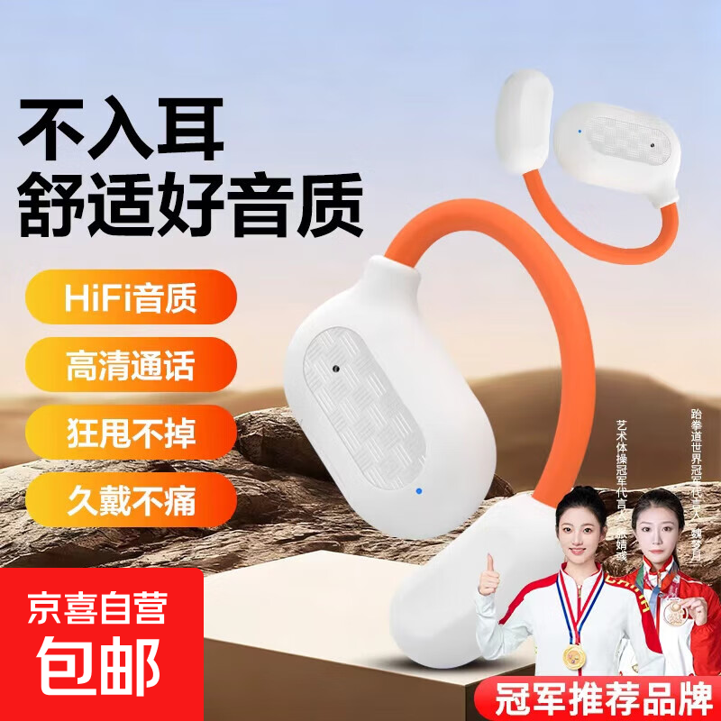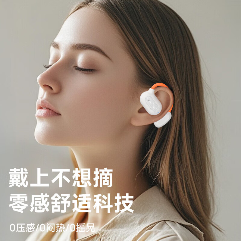 2025新款蓝牙耳机 高颜值挂耳式真无线不入耳舒适佩戴 超长续航音乐降噪运动跑游戏手机通用 白橙-挂耳式单耳耳机