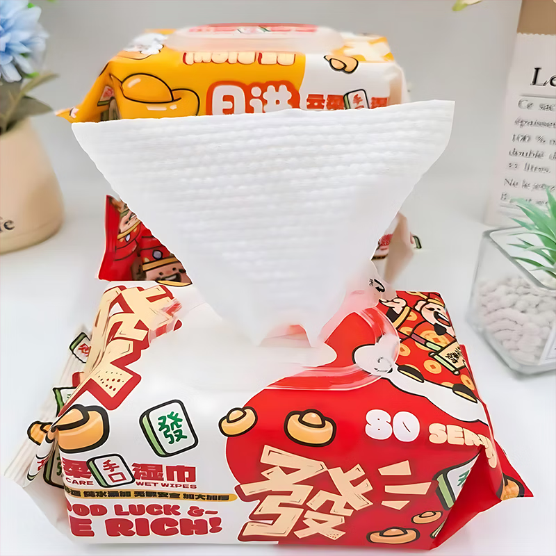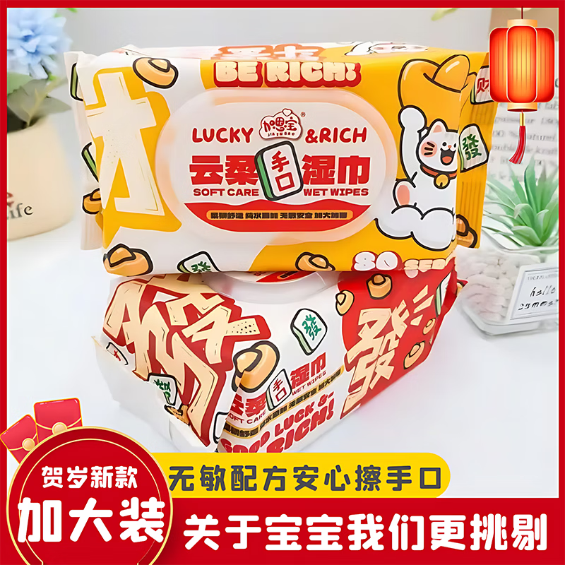 【五星专享】湿巾纸发财款新年加厚款婴儿手口巨厚珍珠纹家庭装 新年发财款两种颜色随机发60抽*2包