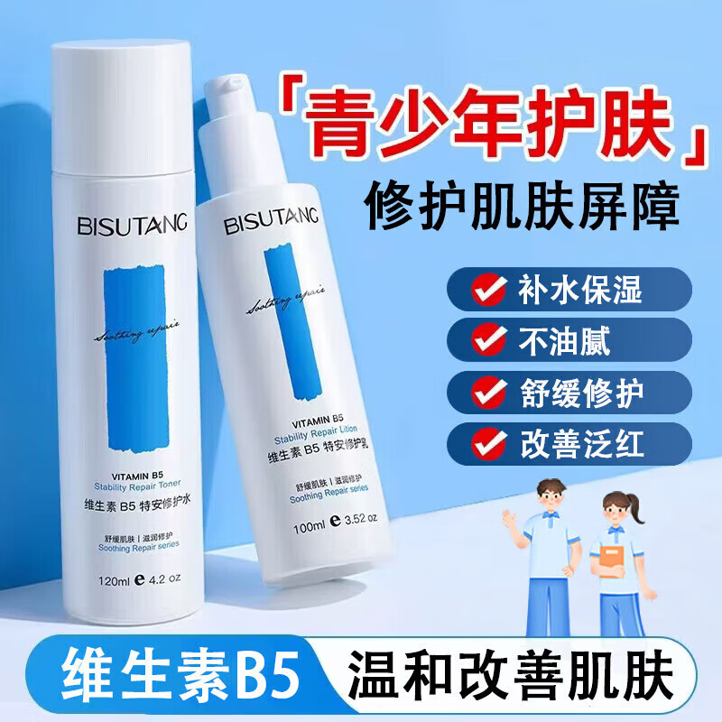 碧素堂青少年护肤品秋冬12-18岁男女孩学生屏障修护B5补水保湿水乳套装 修护水乳套装+面霜