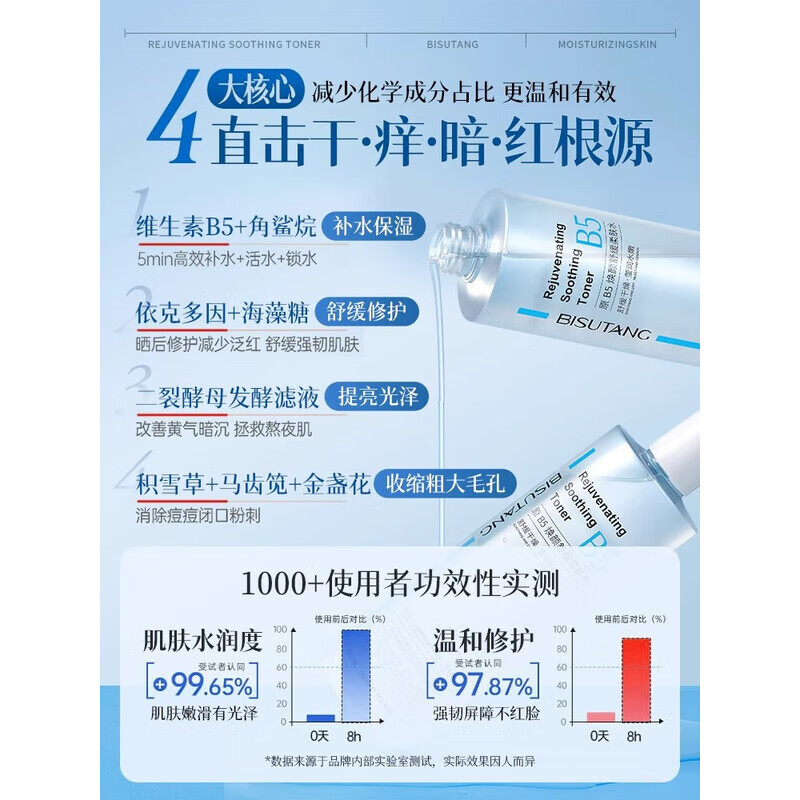 碧素堂八杯水爽肤润肤水清爽补水保湿紧致收缩毛孔滋润干皮粗糙缺水肌肤 碧素堂B5积雪草爽肤水500ml