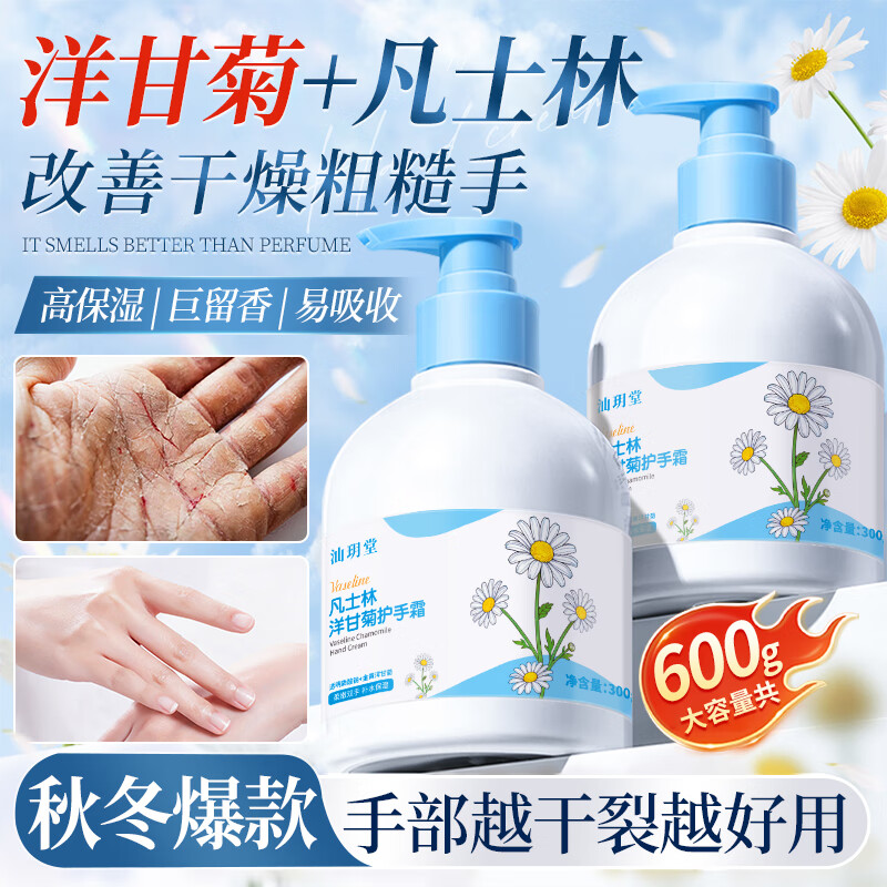 汕玥堂凡士林洋甘菊护手霜女补水保湿滋润手足防干裂留香秋冬季手膜霜 凡士林洋甘菊护手霜300g*2瓶