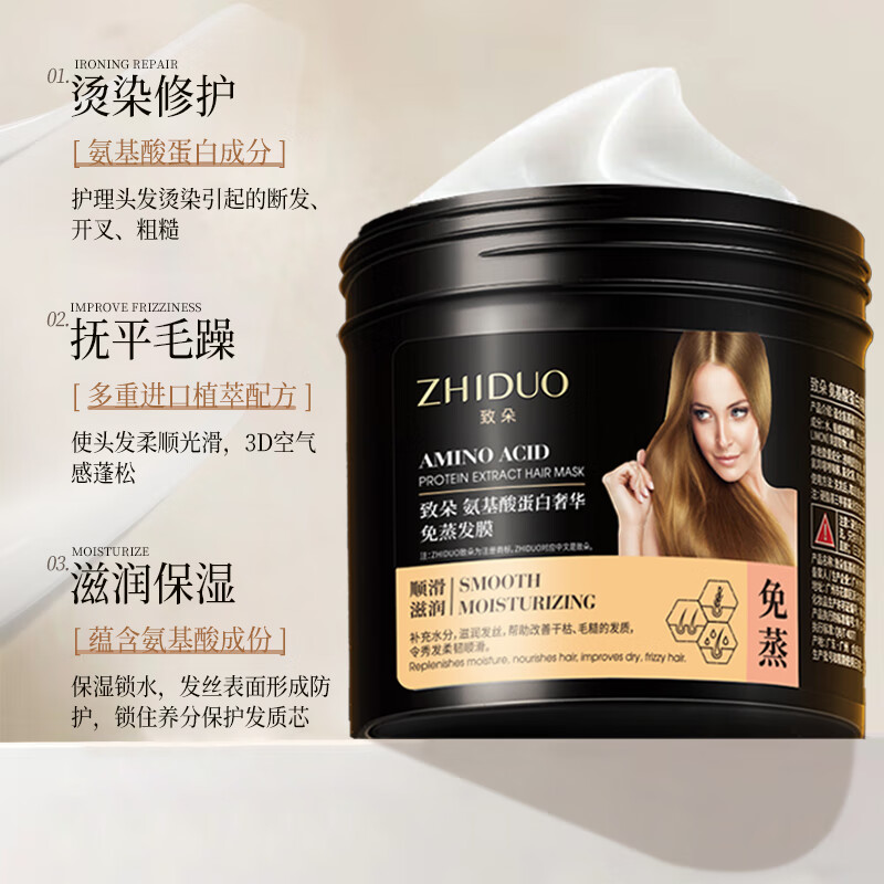 zhiduo氨基酸蛋白发膜烫染修护干枯毛躁分叉免蒸护发素精油柔顺滑学生女 氨基酸蛋白发膜500g*1瓶