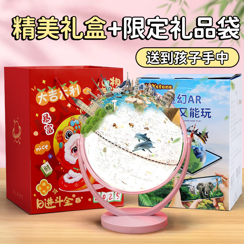 JOYSTONE地球仪3d立体小学生用儿童8-12男10女孩生日礼物圣诞节礼物7-14岁 教学充电款-粉【AR+夜灯+礼盒】 新年礼物六一儿童节小女童9生6岁