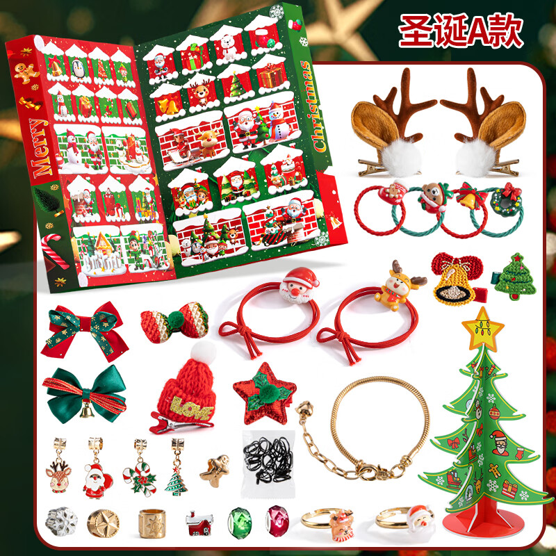 活石圣诞礼物儿童圣诞盲盒圣诞节礼物戳戳乐洞洞礼盒玩具女孩送女生 鎏金圣诞礼【发饰+手链+大礼盒+圣诞树】 10岁3岁4岁5手链6生日7礼物89伴手礼豪华版