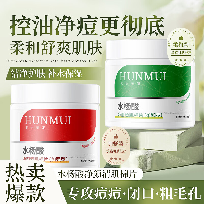 韩伦美羽水杨酸养护棉片湿敷祛去黑痘头收缩深层清洁毛孔护肤礼物送女生水杨酸养护棉片*2【加强型】---------------------