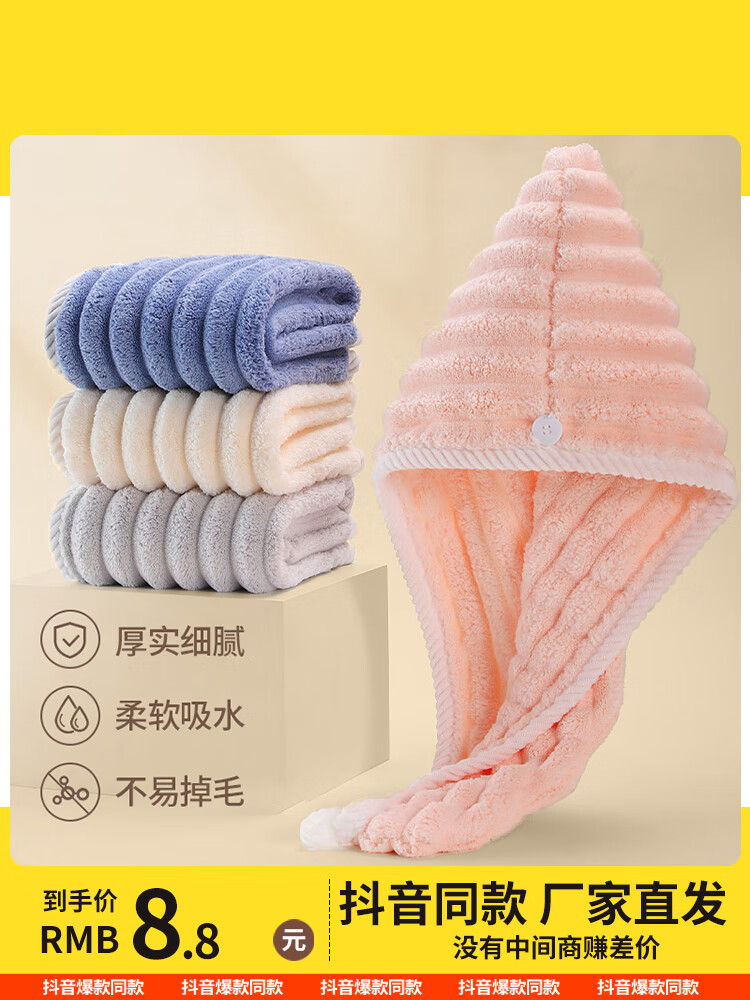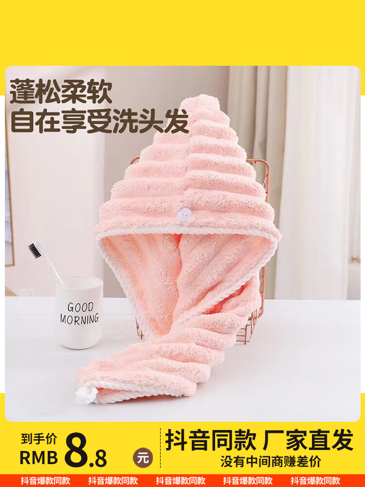波浪纹干发帽超强吸水速干女浴帽洗头包头发毛巾2024家用 粉色1个