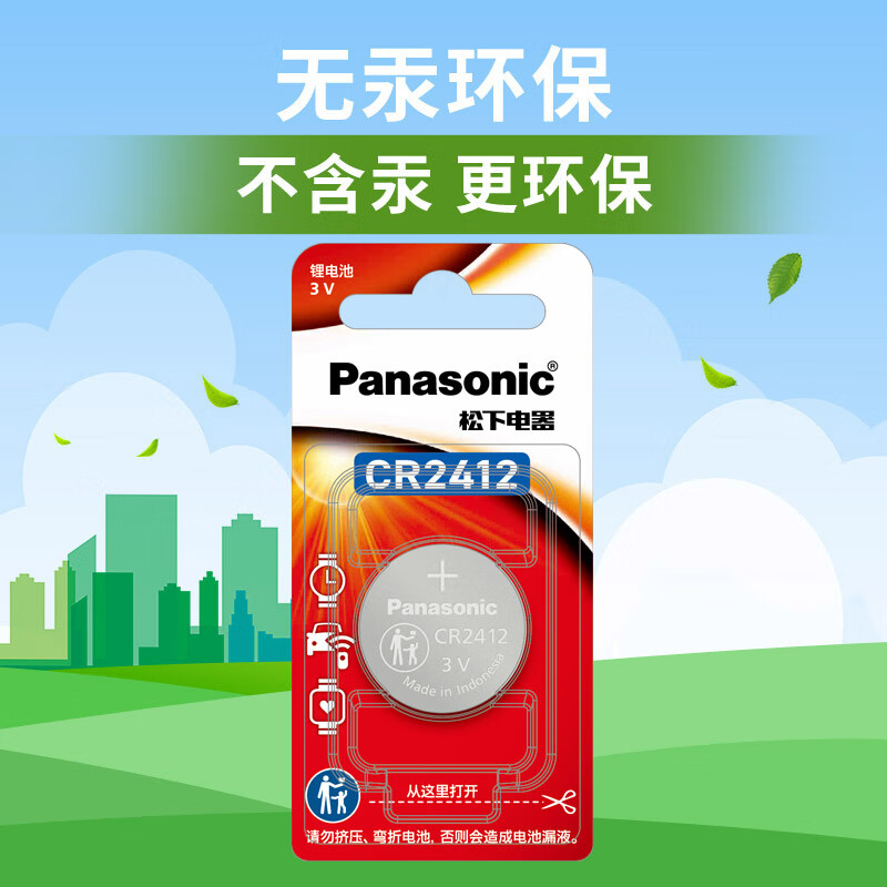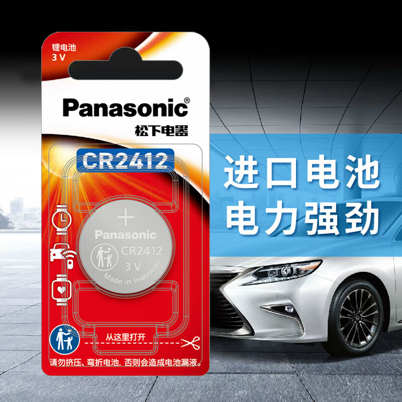 松下(Panasonic)CR2412进口纽扣电池3V适用于汽车钥匙遥控器CR2412 一粒