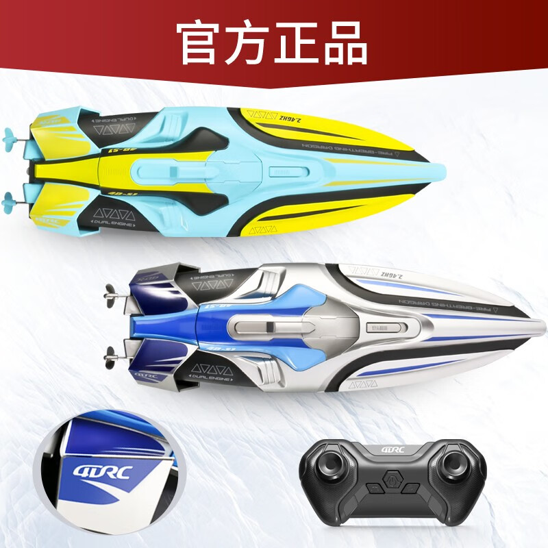 4DRC遥控船2.4G高速快艇军舰水上电动玩具游艇电动模型男孩儿童礼物 35cm高速快艇【星光银】双电