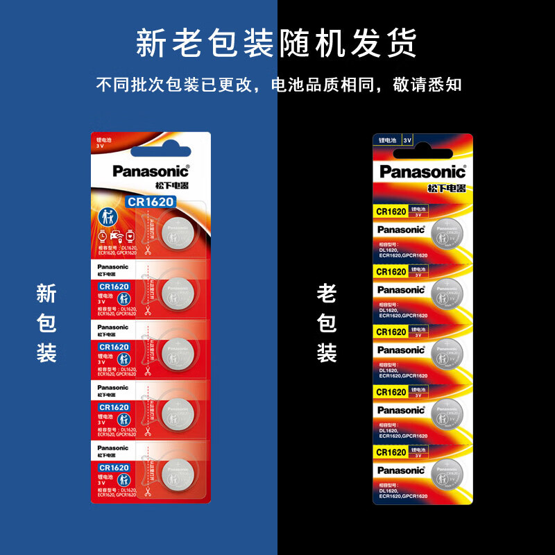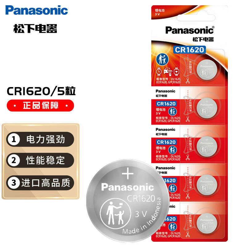 松下(Panasonic)CR1620进口纽扣电池电子3V适用马自达世嘉标致汽车钥匙遥控器CR1620 五粒
