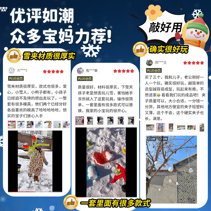 活石(LIVING STONES)玩雪工具夹雪球神器雪球夹大号雪人模具儿童雪夹子玩具滑雪板装备 大号雪夹3件套【雪人+爱心+鸭子