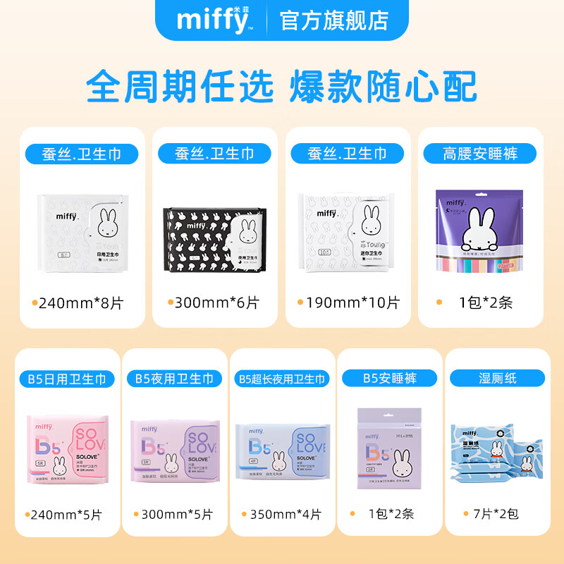 米菲【24.9元任选6件】Miffy日夜用卫生巾护垫透气学生安睡裤姨妈巾 蚕丝日用卫生巾240mm【1包8片】