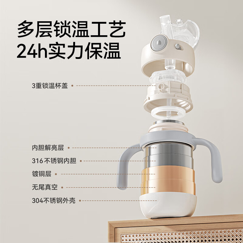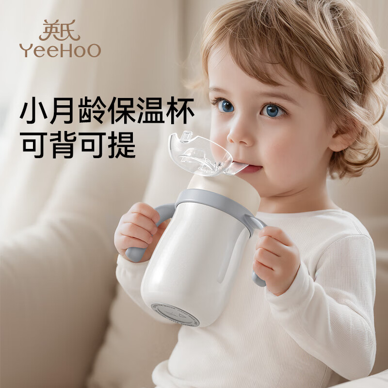 YEEHOO婴儿吸管嘴保温学饮杯儿童宝宝幼儿园水杯小月龄直饮杯白色300ml