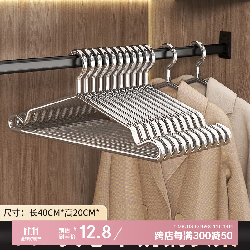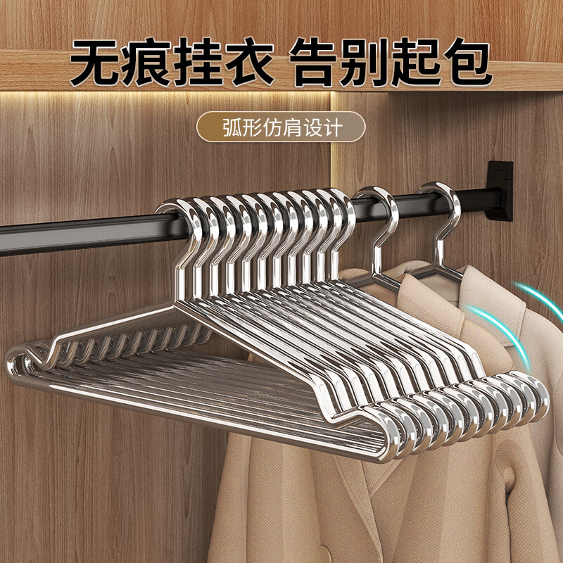 洁百纳304不锈钢衣架家用实芯挂衣架子加粗加厚晾衣撑子晒衣挂衣服挂钩 40cm成人标准款【特粗款不锈钢】 10个