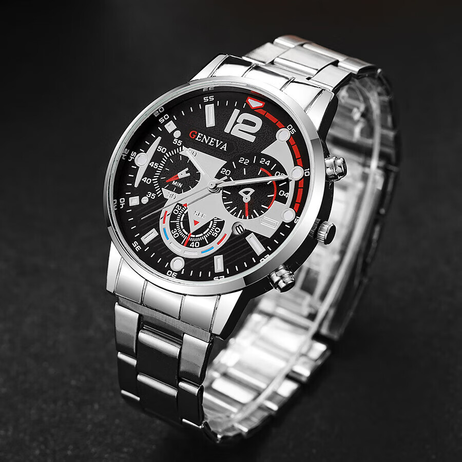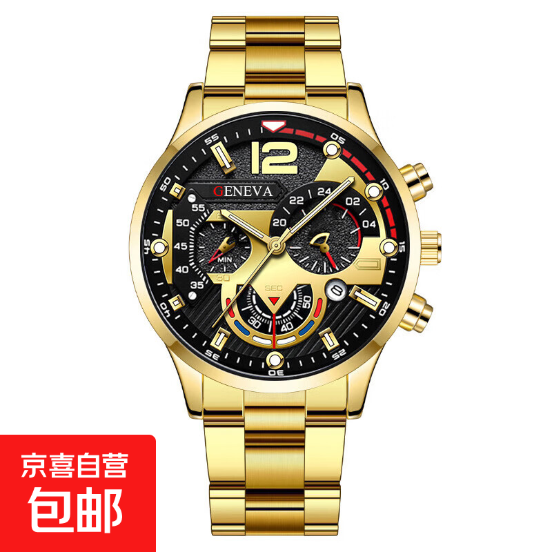 男士钢带日历石英手表运动夜光指针石英表 金色