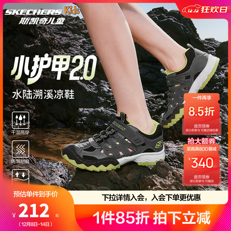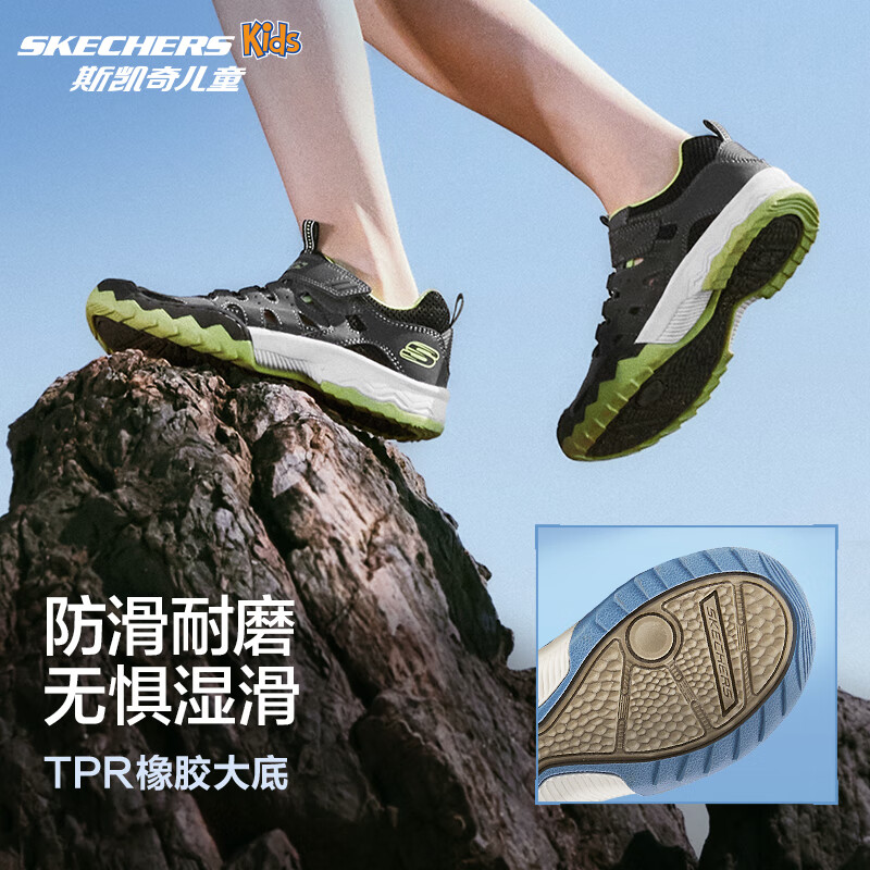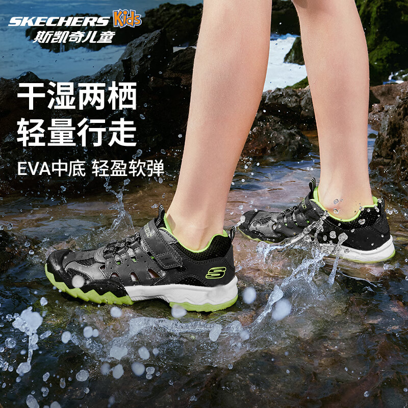 Skechers斯凯奇童鞋男童时尚沙滩鞋夏季户外防滑耐磨儿童包头凉鞋407031L 男童/炭灰色/柠檬色/CBLM 32