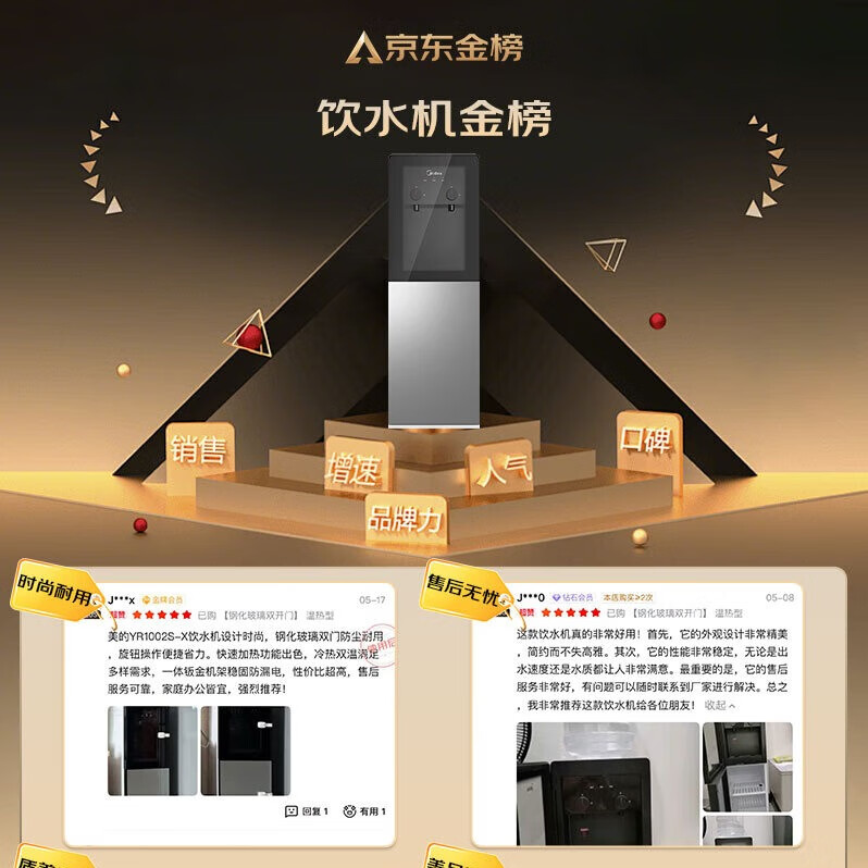 美的(Midea)饮水机茶吧机家用上置式净水机一体客厅立式国家补贴桶装宿舍办公室YR1002S-X【钢化玻璃双开门】