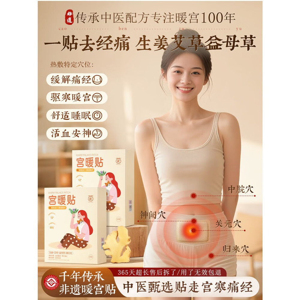 米卡博暖宝宝贴暖贴暖身暖腰腹关节自发加热保宫暖女生理经期大姨妈 艾草益母草生姜30片【我超暖的】