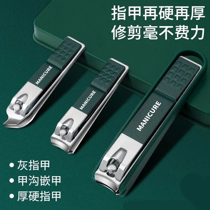 洋臣精工指甲剪套装家用修脚专用指甲刀单个大号平口指甲钳四件套 墨绿色4件套礼盒【单套装】