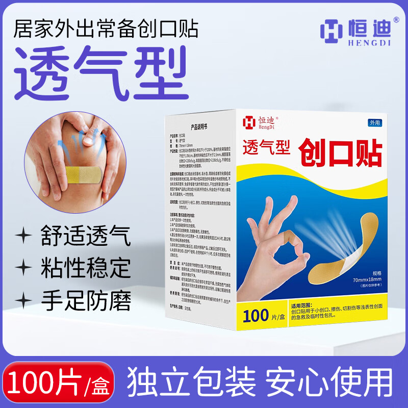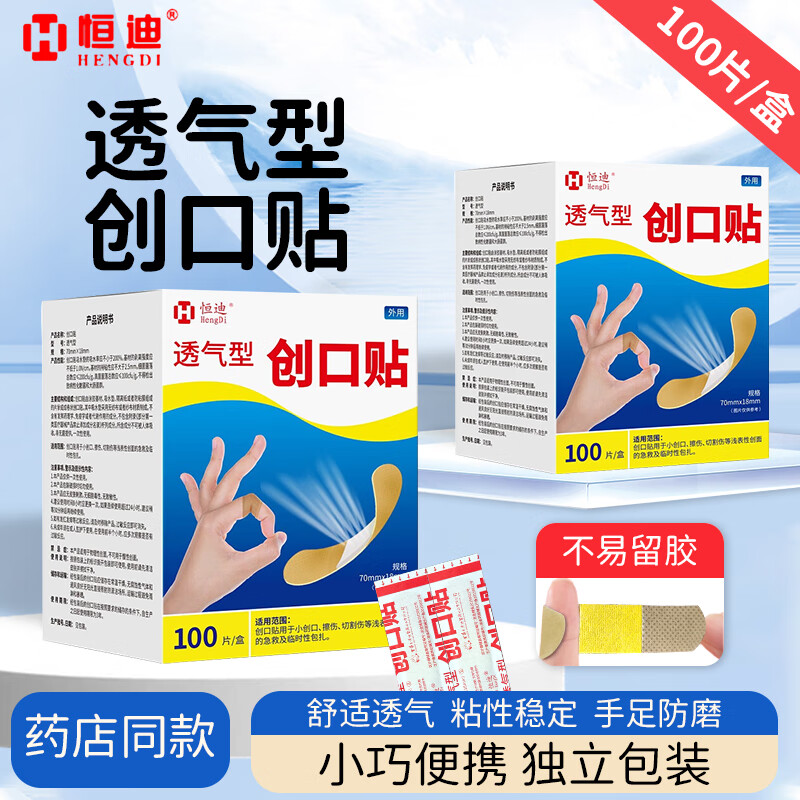 恒迪创口贴100片装透气轻巧皮外擦伤家用可爱创口贴防磨脚创可贴 创口贴100片x1盒