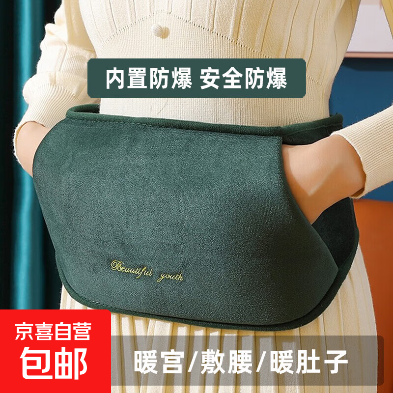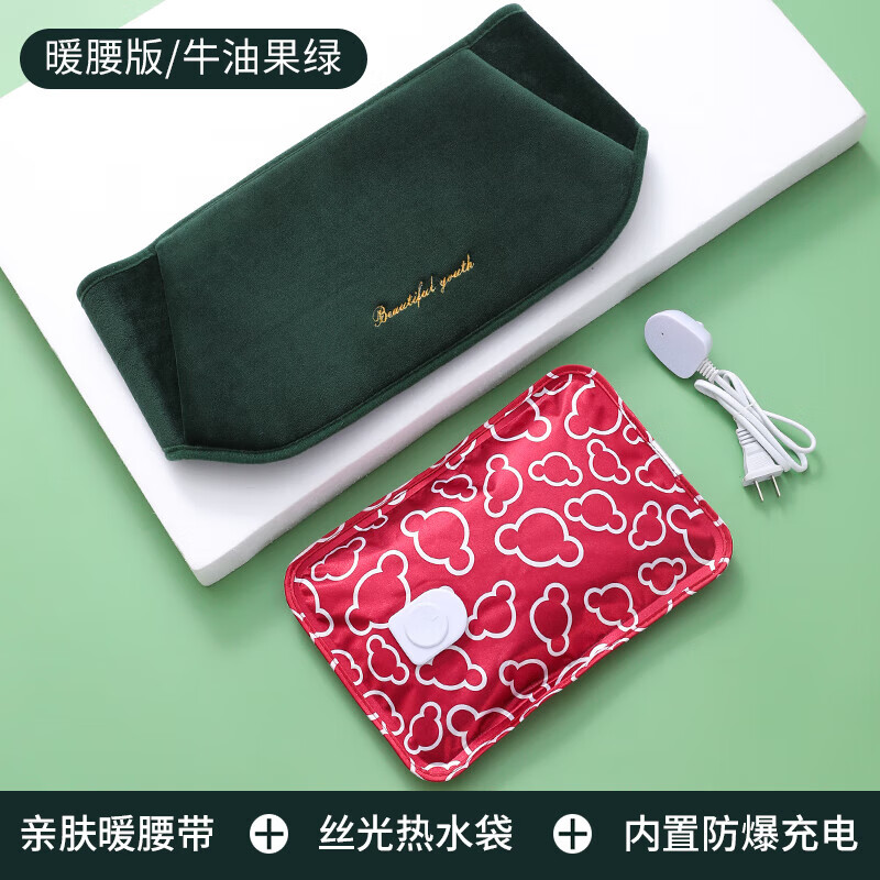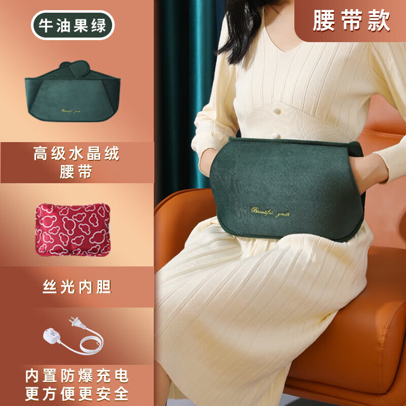 ⭐3C爆款⭐电热水袋暖手宝电暖宫腰带充电护腰带暖肚生日礼物女士 【腰带款】绿色【亲肤水晶绒丨气压防爆防干烧】