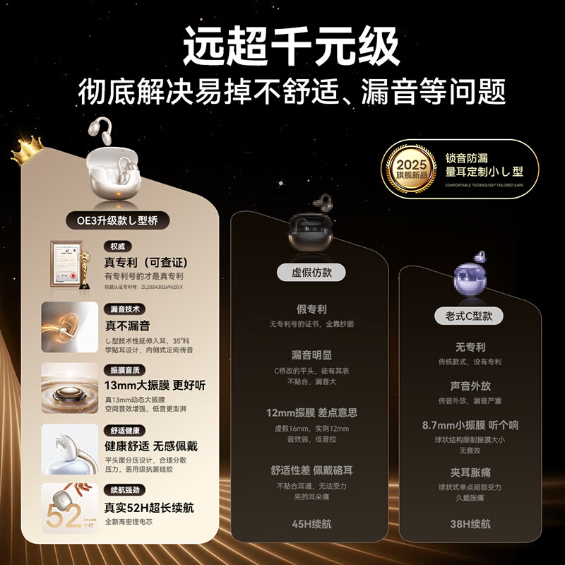 机乐堂(joyroom)【首创L型平头塞】OE3蓝牙耳机耳夹式不入耳不伤耳朵开放式骨传导金榜第1真无线运动跑步超长续航