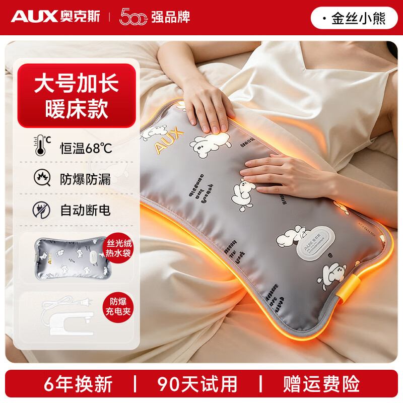 奥克斯(AUX)【大号更热丨被窝用】热水袋暖手暖水袋暖宝宝充电防爆被窝长条 一体式【丝光面料】卡通狗+3C认证+防爆无异味
