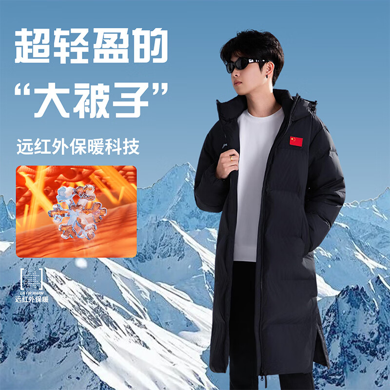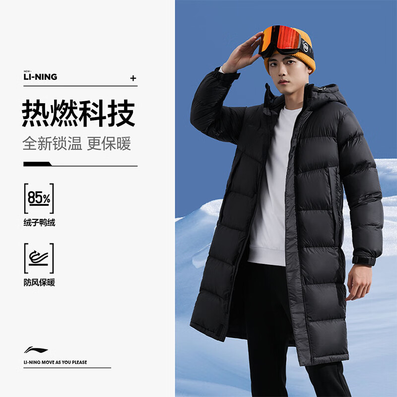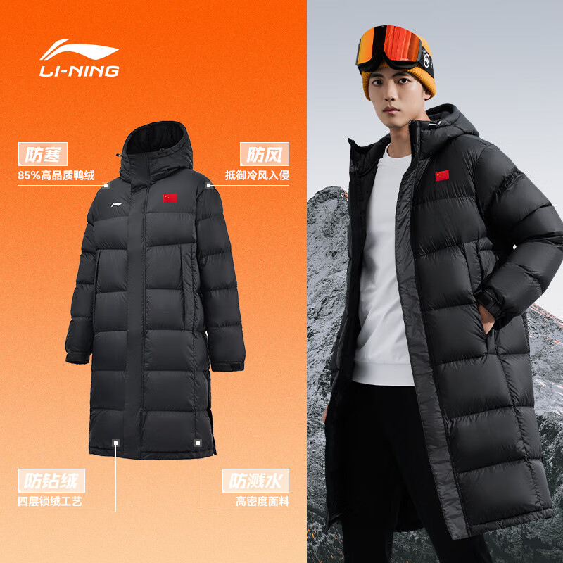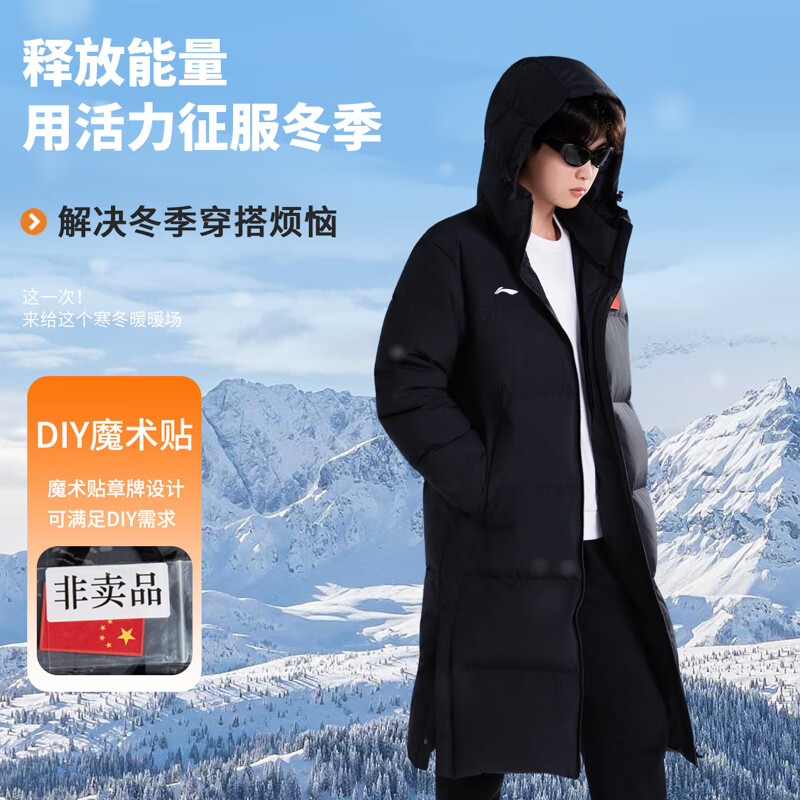 李宁羽毛球系列长短款羽绒服男女士冬季新款健身系列80%鸭绒保暖外套 黑色(757)长款羽绒服 L
