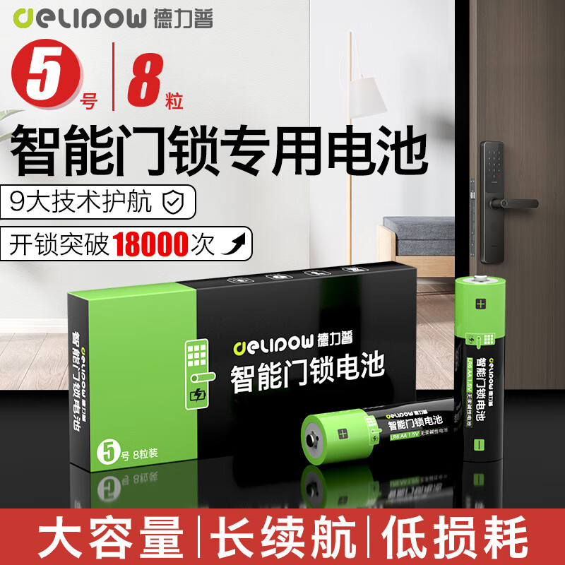 德力普(Delipow)智能门锁电池5号8粒 适用于小米飞利浦鹿客凯迪仕TCL德施曼华为米家等电子门锁指纹锁密码锁